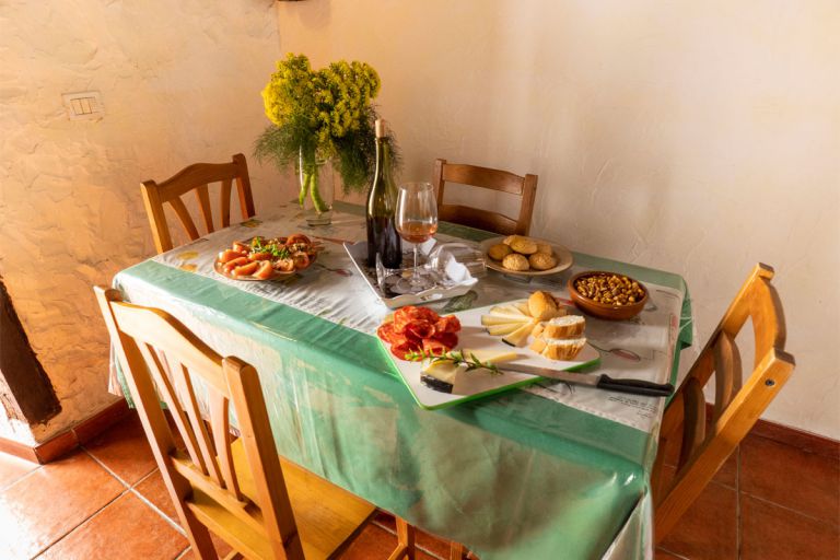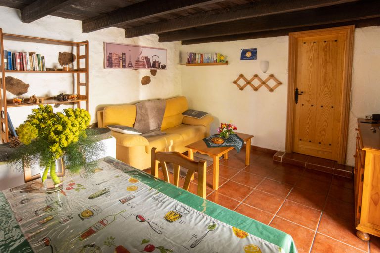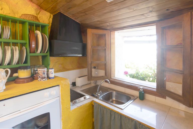 | Das Ferienhaus ist mit 60 qm Wohnfläche für 3 Personen geeignet. In der unteren Etage liegt die an das Haus angrenzenden Küche, das Wohnzimmer mit Esszimmer und das Bad mit Dusche, Waschmaschine und Föhn. Es gibt einen Fernseher mit Spanischen Programmen und einen Internetzugang über Wlan. Ein Heizofen steht zur Verfügung. Vor dem Haus liegt die geräumige Terrasse mit einen Außengrill. |