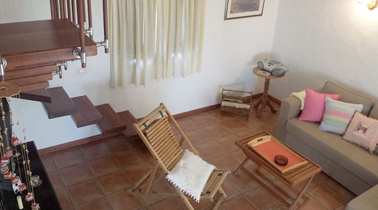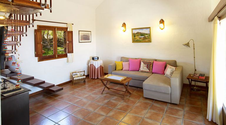 | Mit einer Wohnfläche von ca. 75 qm und einem Schlafzimmern ist die Finca für 2 Personen geeignet. Der Wohnraum ist mit einer gemütlichen Couchgarnitur ausgestattet und verfügt über ein SAT-TV mit Radio, einen CD-Player und einen kostenlosen Internetzugang über Wlan. |