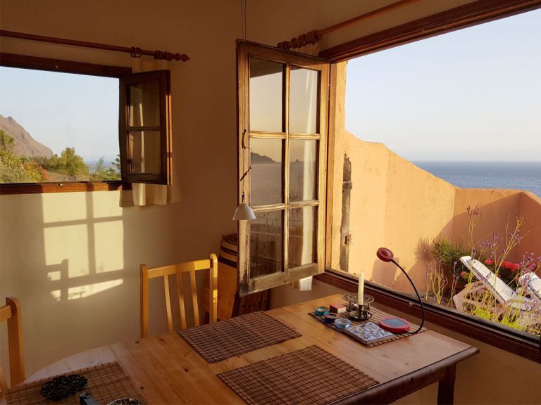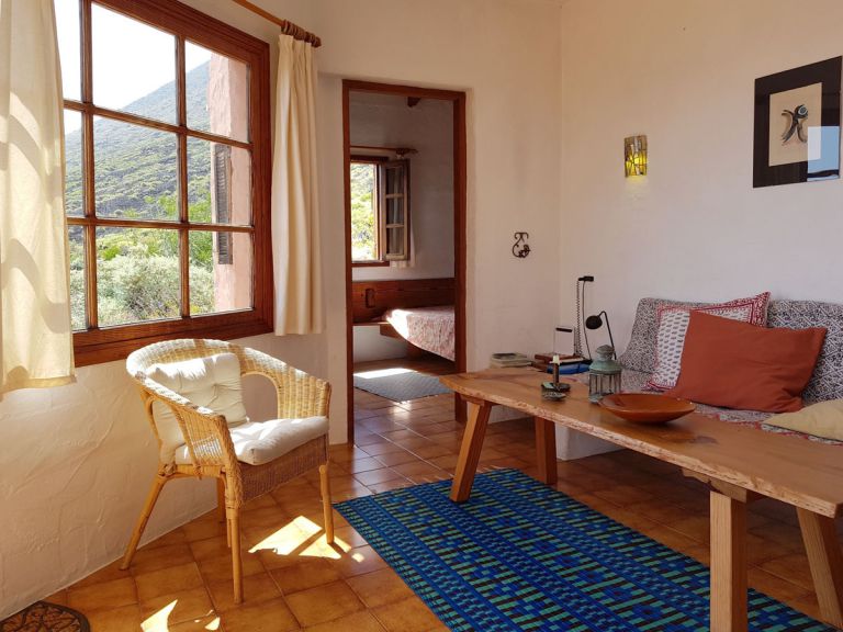 | Mitten in der Natur, auf einer 90 Meter über dem Meer liegenden Weinterrasse, liegt diese lauschige Finca für 2 Personen, nur 300 Meter vom Meer entfernt.