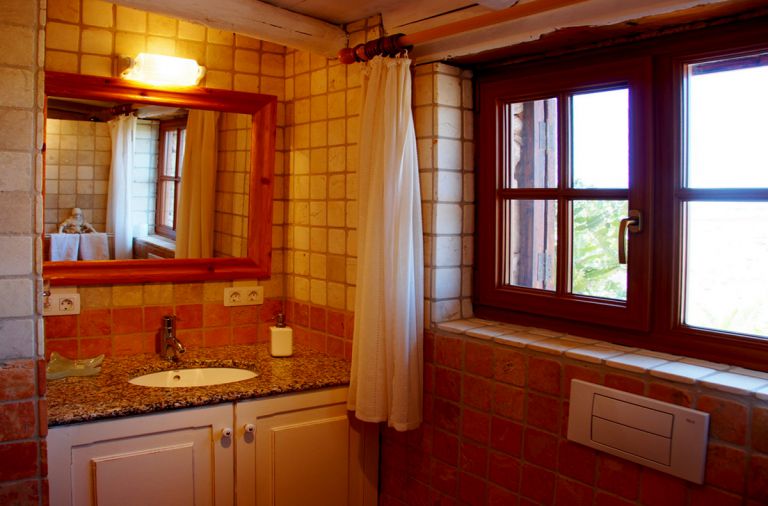 | Das Duschbad mit Marmorfliesen verfügt über eine gemauerte Dusche, Waschtisch und WC und ist separat angelegt. Eine Waschmaschine ist vorhanden. |
