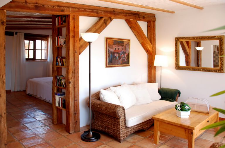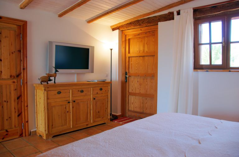 | Hinter dem geräumigen Kleiderschrank, und durch diesen separiert, liegt der Schlafbereich mit einem 2 x 2 m großen Doppelbett und SAT - TV. Ein Internetzugang ist zudem kostenlos im Haus verfügbar. | ||