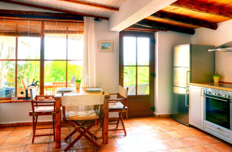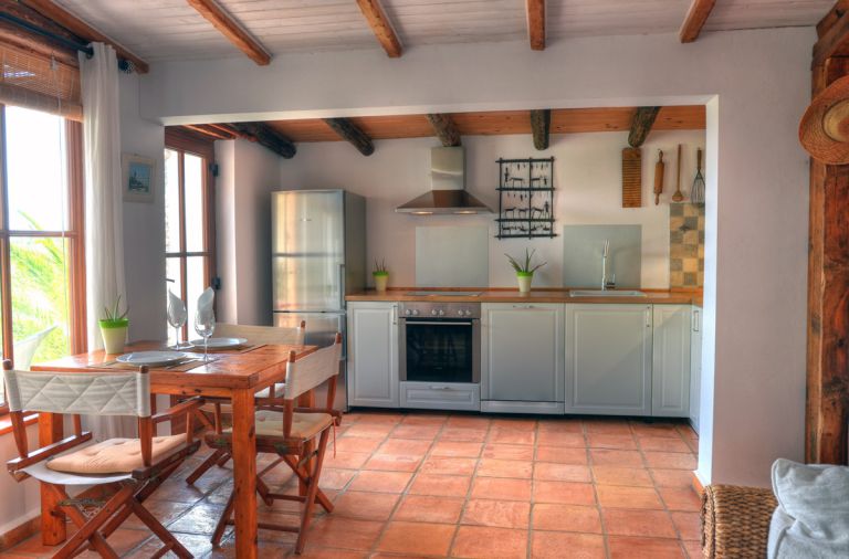 | Das Ferienhaus ist rustikal und sehr gemütlich eingerichtet und bietet mit knapp 50 qm Platz für 2 Personen. Der Wohnraum ist mit einer gemütlichen Rattansitzgruppe und einem Eßtisch ausgestattet. Von hier aus führt eine Tür auf die ca. 16 qm große Terrasse, die Ihnen einen herrlichen Blick auf das Meer bietet. Gartenmöbel und Sonnenliegen stehen zur Verfügung. |