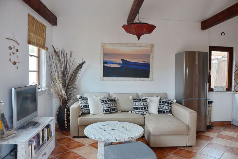| Das gemütlich eingerichtete Ferienhaus verfügt über einen großzügigen Wohnessbereich mit Couch (Schlafcouch für 3. und 4. Person), SAT-TV, integrierter Küche mit Geschirrspüler, Kaffeemaschine, Toaster, Mikrowelle und einem Essisch, ein großes Schlafzimmer mit Doppelbett und ein Bad mit Dusche, Waschbecken und WC. | |||||