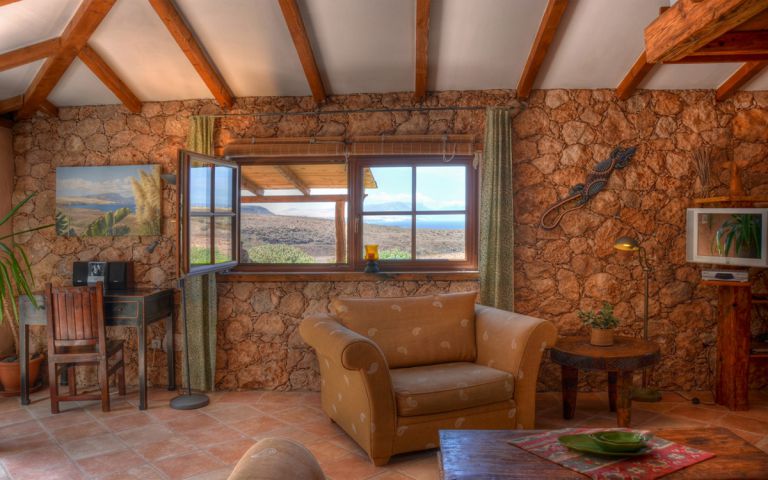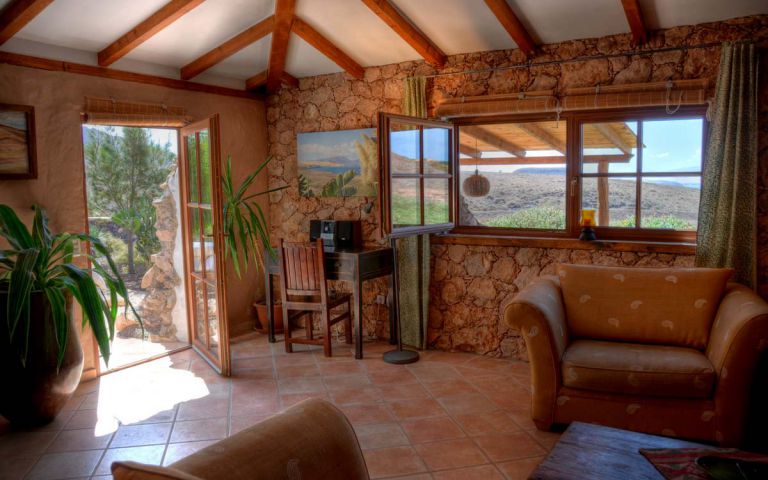 | Es handelt sich um ein strandnahes Ferienhaus in absoluter Ruhe in La Pared an der Westküste von Fuerteventura. Das Ferienhaus basiert auf einem alten spanischen Wasserspeicher, der außen schräge, bis zu 1 Meter dicke Natursteinwände hat, die dem Haus sein unvergleichliches individuelles Aussehen verleihen und gleichzeitig für ein konstantes Raumklima sorgen. | |||||