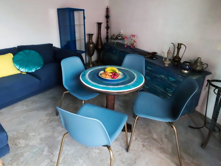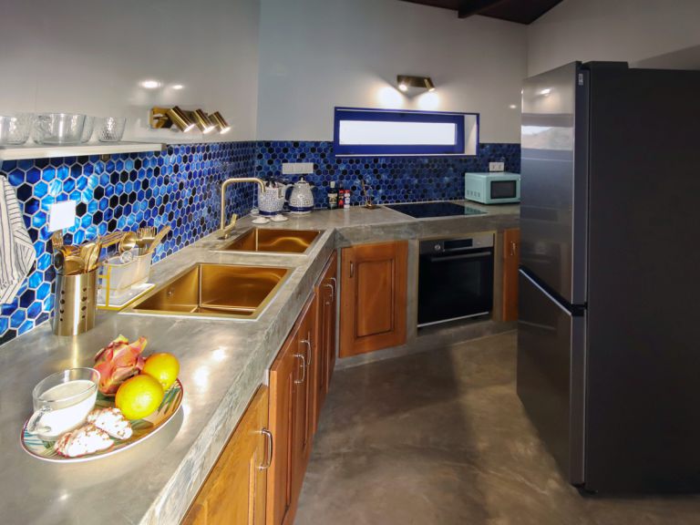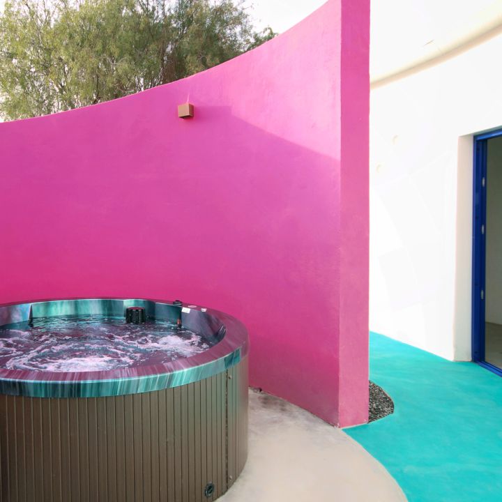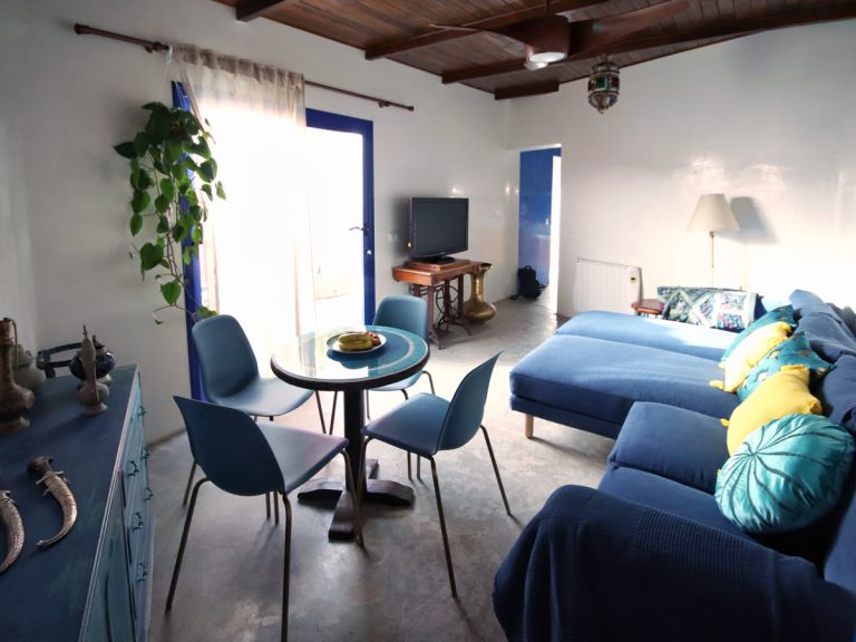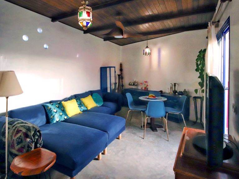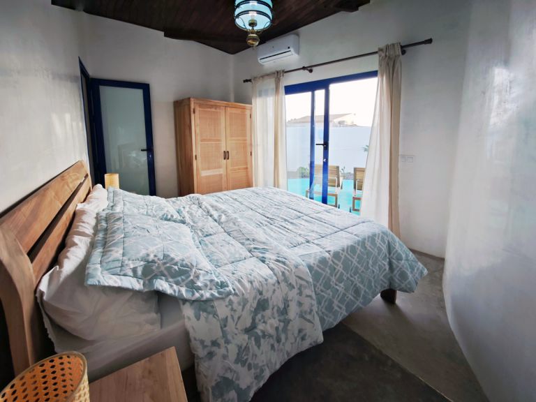 | Zum Ferienhaus, das auf einem 220 qm großen Grundstück von den Eigentümern entworfen wurde, gehört ein eigener kleiner Garten mit Jacuzzi und eine große Terrasse mit Gartenmöbeln, Sonnenliegen, sowie einem Gartengrill und einem Gartentisch mit vier Stühlen. Mit 75 qm Wohnfläche bietet das Ferienhaus Platz für bis zu 4 Personen. Es verfügt über zwei Schlafzimmer. Zudem gehören Klimaanlage, eine mobile Heizung, Safe, kostenloser WLAN-Zugang und Waschmaschine zur Ausstattung. |