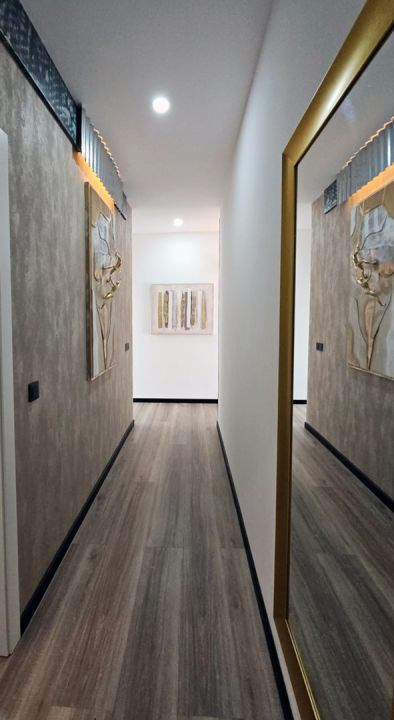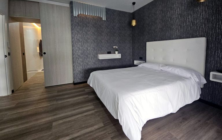 | Beide Schlafzimmer verfügen über Doppelbetten. Das Hauptschlafzimmer bietet die Bettgröße 180 x 190 cm, das weitere die Maße 150 x 190 cm. Selbstverständlich verfügen die beiden Schlafräume auf über Kleiderschränke. Das geräumige moderne Bad ist ausgestattet mit einer ebenerdigen Dusche, Waschbecken, WC und Bidet. |