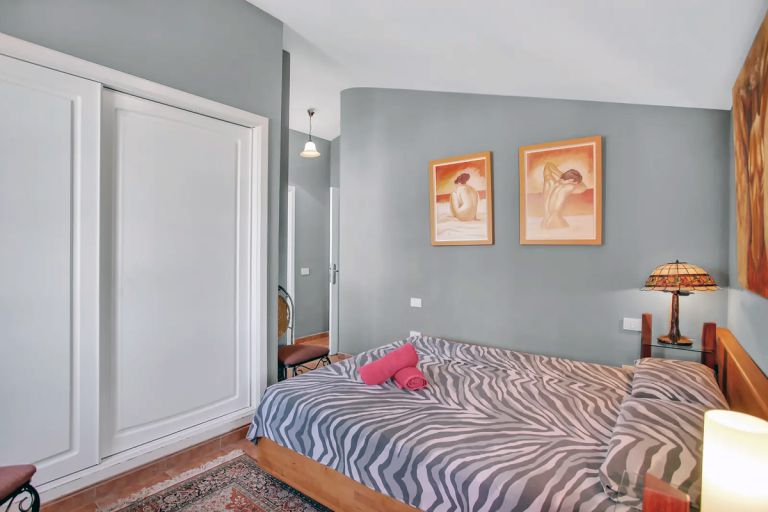 | Das Ferienhaus verfügt über insgesamt drei Schlafzimmer. Zwei sind mit einem Doppelbett und eines mit zwei Einzelbetten ausgestattet. Jedes Schlafzimmer verfügt über Kleiderschränke und zum Teil über ein SAT-TV. Neben den beiden Badezimmern, die über eine ebenerdige Dusche mit großem Duschteller und Handbrause sowie Waschbecken mit großem Spiegel und WC verfügen, gibt es ein kleines Gäste-WC. |