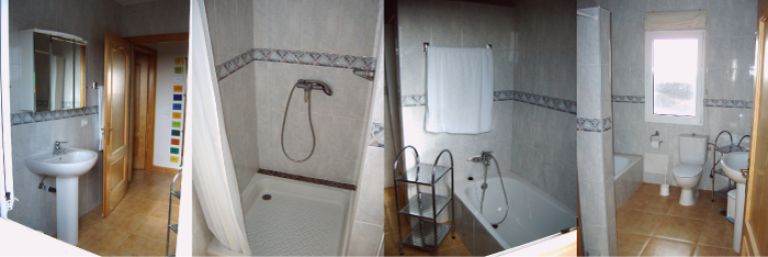 | Das Badezimmer verfügt über einen guten und soliden Standard mit Badewanne und gemauerter Dusche. Ein zweites behindertengerechtes Badezimmer ist ebenfalls vorhanden. | |||||