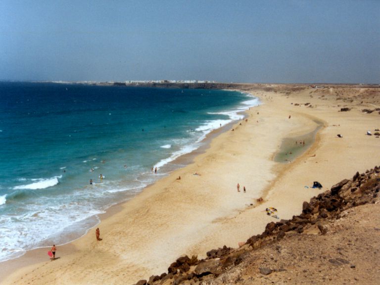 | Corralejo, neben Jandia im Süden, das zweitgrößte Touristenzentrum von Fuerteventura liegt 18 km entfernt und ist mit dem Auto in 15 Minuten zu erreichen. Gute Fischrestaurants finden sich entlang der Strandpromenade, zudem gibt es eine Fußgängerzone, Bars, Diskotheken, Geschäfte und Boutiquen, große Supermärkte, einen lebhaften Hafen mit einer Fährverbindung nach Lanzarote (45 Min. Fahrzeit) und natürlich Hotels und Appartements aller Kategorien. 3 Kilometer entfernt befindet sich das beeindruckende Wanderdünengebiet mit seinem 8 Kilometer langen Strand und dem bekannten Hotel Tres Islas mit Blick auf Lanzarote und Los Lobos. | |||||