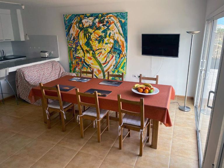 | Die Terrasse im Eingangsbereich und die über 110 qm große Dachterrasse mit gemauerten Bänken sowie Sonnen- und Sichtschutz bieten viele Möglichkeiten zum Entspannen und Sonnenbaden. Eine weitere kleine, windgeschützte Terrasse schließt sich an das obere Wohnzimmer an und bietet einen phantastischen Blick auf die Strände, die sanftgeschwungenen Berge und am Abend auf den Sonnenuntergang über dem Meer. Im hinteren Souterainbereich des Ferienhauses befindet sich ein kleines Studio (F-261) das gelegentlich auch bewohnt ist. In Absprache mit den Eigentümern kann bei Anmietung der Wohnung das Apartment unvermietet bleiben oder das gesamte Haus angemietet werden. |