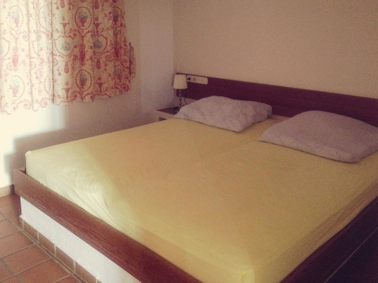 | Das geräumige Wohnzimmer mit halbintegrierter gut ausgestatteter Einbauküche ist mit einer Couchgarnitur, einem Eßtisch, SAT - TV, Video- und Stereoanlage ausgestattet. Es stehen Ihnen zwei Schlafzimmer und ein Bad mit einer geräumigen Dusche, Waschbecken und WC zur Verfügung. | ||