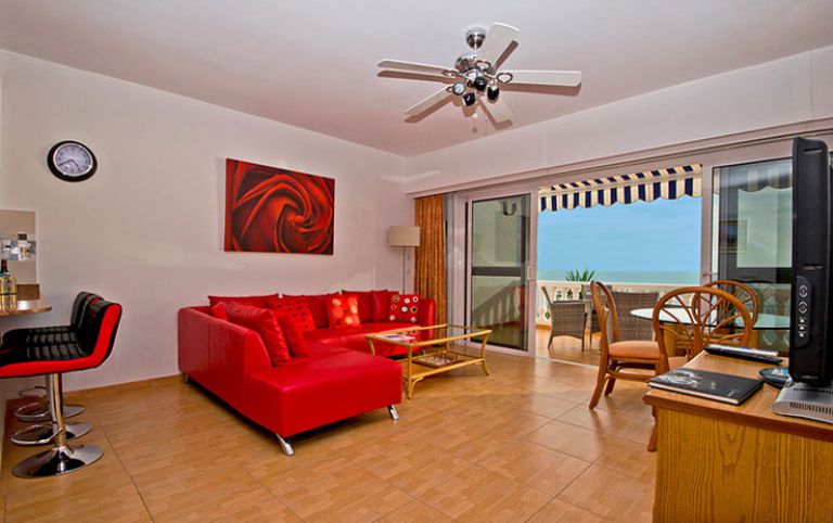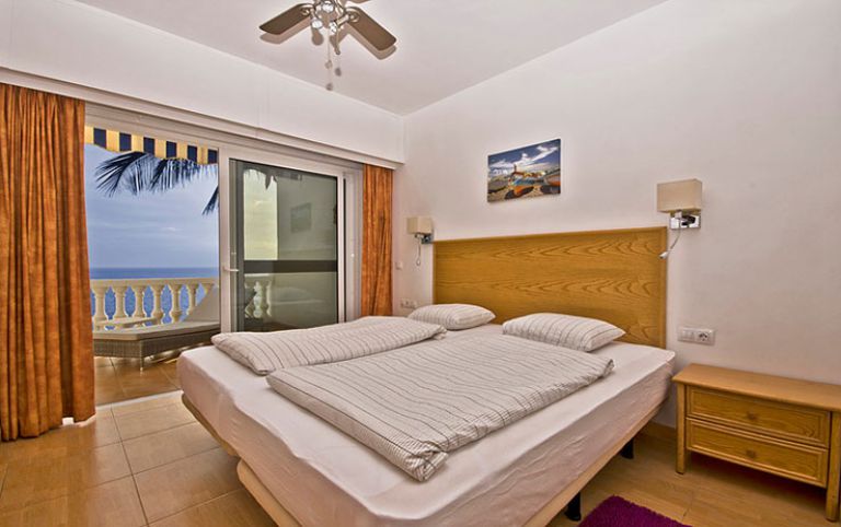 | Darüber hinaus stehen Ihnen zwei Schlafzimmer mit Doppelbetten und ensuite zwei Badezimmer zur Verfügung. Vor der Ferienwohnung befindet sich ein ca. 50 qm großer Außenbereich mit Gartenmöbeln und Liegestühlen, der Ihnen einen fanatastischen Meerblick bietet. 1 x wöchentlich Reinigung und Wäschewechsel. |