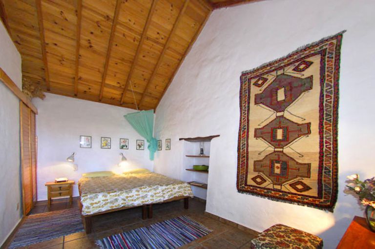 | Vom Schlafzimmer aus führt eine Holzleiter auf eine Empore mit Giebeldach (maximale Höhe 1,80 m), die als Schlafgelegenheit oder als Stauraum genutzt werden kann. Sowohl vom Wohnraum als auch vom Schlafzimmer aus führt eine Tür auf die Terrasse. Mehrere Außensitzplätze stehen im Patio und Gartenbereich mit Grillplatz zur Verfügung. Zum Anwesen gehört eine freundliche Schäferhündin. Eine Waschmaschine kann genutzt werden. | |||||