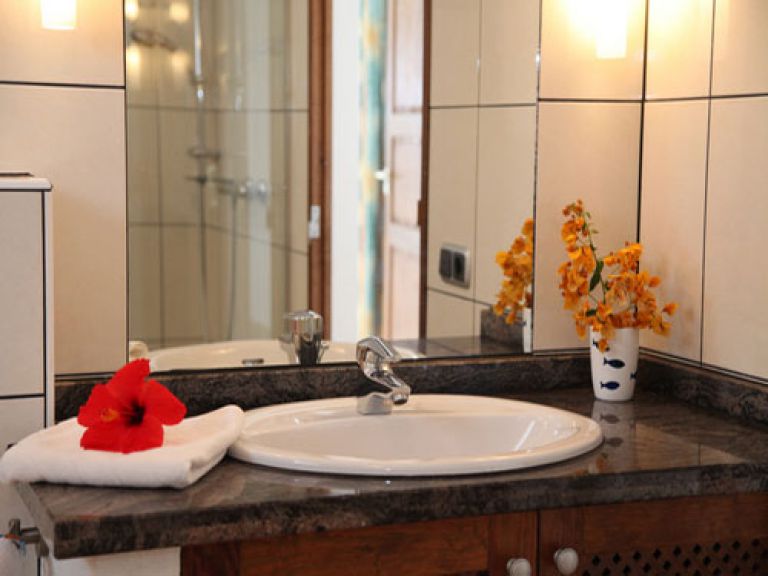 | Mit ca. 180 qm Wohnfläche ist die Villa für bis zu 6 Personen geeignet. Es handelt sich um eine traumhafte, stilvoll und mit viel Liebe zum Detail geplante und eingerichtete Villa. Sie besteht aus einem großen Salon mit Sitzecke, SAT - TV und DVD - Player und einem Eßzimmer, beide mit Kamin und einem fantastischen Panoramablick, einer halboffenen, komplett eingerichteten Küche mit Elektroherd, Backofen, Geschirrspüler, Waschmaschine, Kaffeemaschine und Toaster. | |||||
