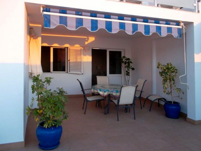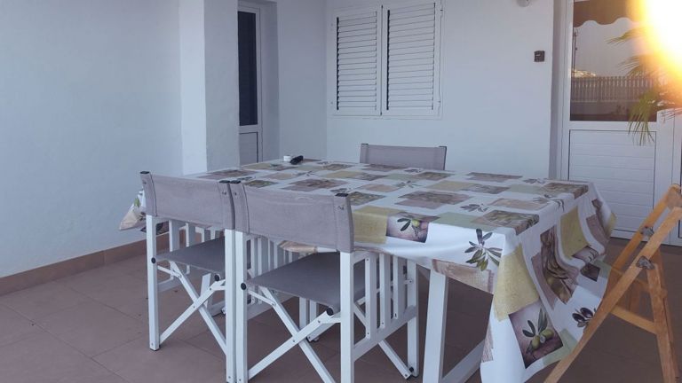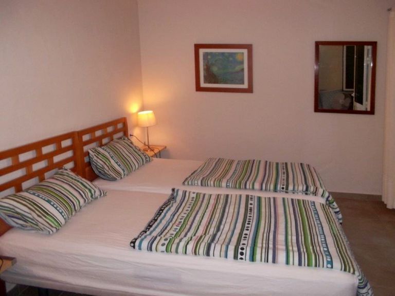 | Das ca. 80 qm große zweietagige Ferienhaus bietet 5 Personen Platz. In der oberen Etage befinden sich zwei Schlafzimmer, eines mit einem Doppelbett, Balkon und Meerblick, das andere mit einem Einzelbett und einer Schlafcouch und das Badezimmer mit Duschbadewanne. | ||
