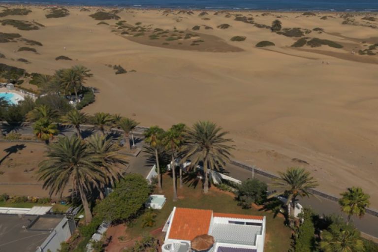 | Diese beiden privaten Ferienhäuser liegen direkt an den über 6 Kilometer langen und zwischen 30 und 100 Meter breiten Dünen von Maspalomas. Supermärkte, Boutiquen, Geschäfte und Restaurants erreichen Sie von hier aus bequem zu Fuß. | |||||