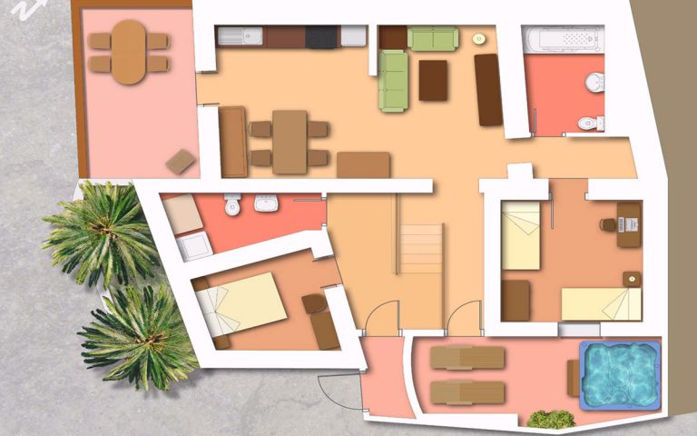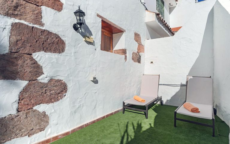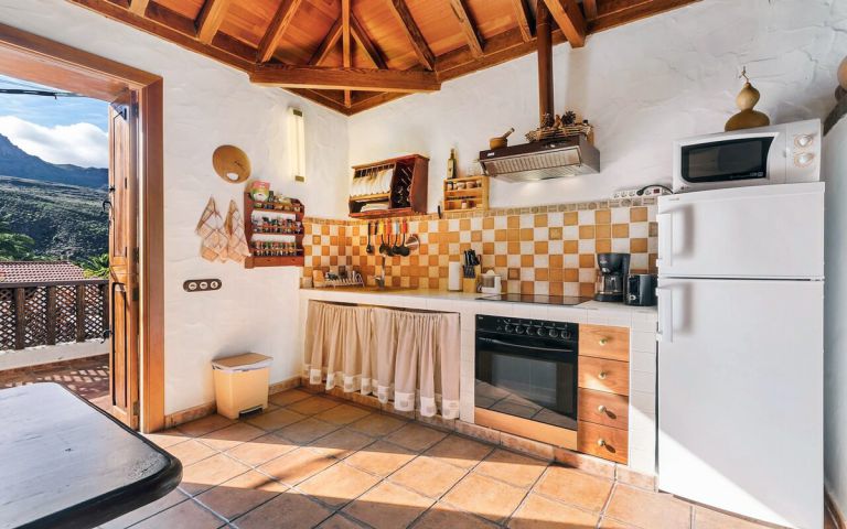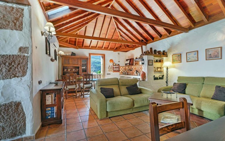 | Der traditionelle kanarische Baustil sorgt für stabile Temperaturen im Haus, im Sommer wird es nicht zu heiß und im Winter nicht zu kühl. Bei der Innenausstattung wurde auf eine angenehme Beleuchtung und eine harmonische Kombination der Einrichtung geachtet. So bietet das Haus eine gemütliche, warme und einladende Atmosphäre. Das Ferienhaus liegt in einem sehr kleinen Dorf, das weniger als zehn Häuser umfasst, nur 4 Kilometer von Santa Lucia entfernt. Von der am Haus vorbeiführenden Strasse geht also kein Lärm aus, zumal sie auch eigentlich nirgendwo hin führt. |