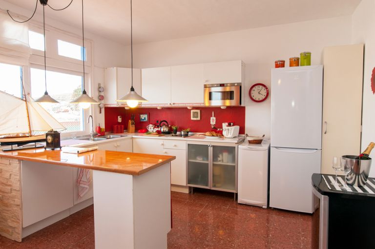 | Die Küche verfügt über ein Cerankochfeld, eine Kühlgefrierkombination, Mikrowelle, Toaster, Kaffeemaschine und zahlreiche Küchenkleingeräte. | |||||