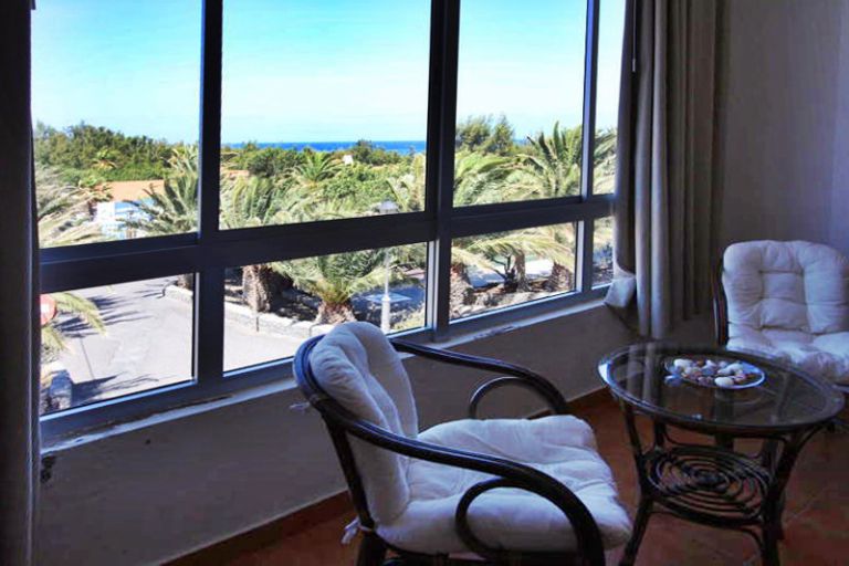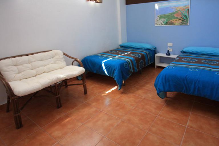 | Die beiden geräumigen Schlafzimmer sind mit einem Doppelbett bzw. zwei Einzelbetten ausgestattet. Ein Schlafzimmer bietet Meerblick und Aussicht auf die gegenüber liegenden Insel Teneriffa und den Teide. | |||||