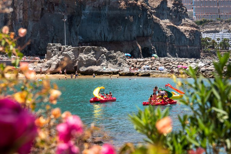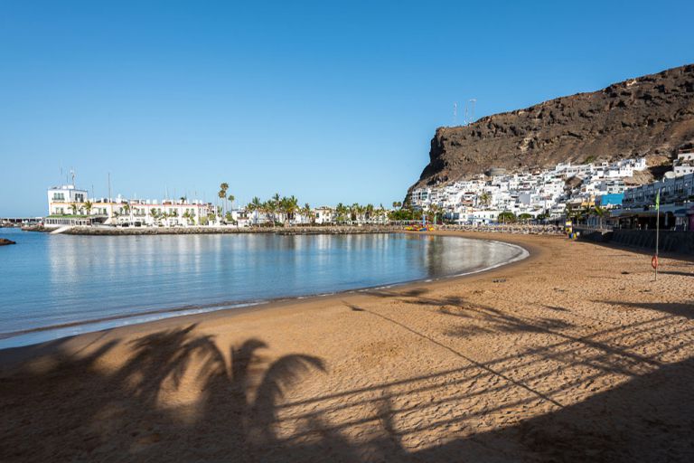 | Puerto de Mogan entstand in den 1980er Jahren nach einem Entwurf von Raphael Neville. Der Ort wird wegen der Kanäle, die vom Hafen durch en Ort führen, auch als Klein Venedig bezeichnet. Die zahlreichen kleinen blühenden Gassen, die sich durch den alten Ortsteil ziehen, tragen zu diesem Erscheinungsbild bei. Der wachsende Tourismus führte zum Ausbau des Ortes, wobei dabei versucht wurde, durch postmoderne Architektur einen Teil des ursprünglichen Charmes zu erhalten. So ist es verboten, in Puerto de Mogán Häuser zu bauen, die mehr als zwei Stockwerke umfassen. So ist das frühere Fischerdorf in seinem Ursprung trotz Tourismus weitgehend erhalten geblieben und der neue Teil fällt nicht negativ als solcher auf. | |||||