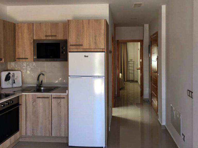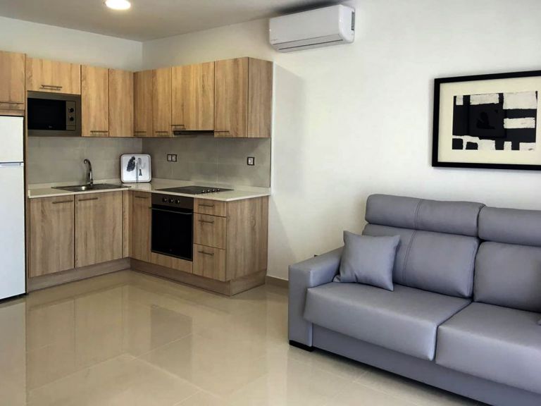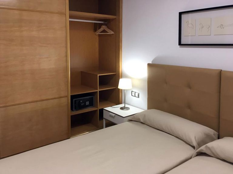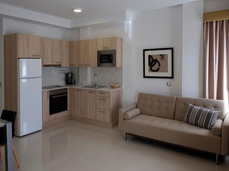 | Die 40 bis 70 qm großen Wohnungen verfügen alle über den gleichen Standart. Im Wohnraum befindet sich eine Couch mit SAT-TV und Radio und ein Esstisch. Die integrierte Einbauküche verfügt über Cerankochfeld, Backofen, Mikrowelle, Kühlgefrierkombination und Kaffeemaschine. Die Badezimmer sind mit Duschen ausgestattet. Die Wohnungen 5 A und B sind für 2 bis 3 Personen geeignet und verfügen über ein Schlafzimmer mit Einzelbetten und eine Schlafcouch im Wohnraum. Die Wohnungen 4 A und B sind für bis zu 4 Personen geeignet und verfügen über ein Doppelschlafzimmer, ein Einzelschlafzimmer und eine Schlafcouch. Die Wohnungen 3 A und B sind für bis zu 5 Personen geeignet. 3 A verfügt über ein Doppelschlafzimmer und zwei Einzelschlafzimmer und die 3 B verfügt über zwei Doppelschlafzimmer und jeweils eine Schlafcouch im Wohnraum. |