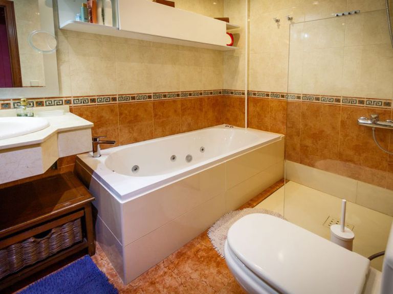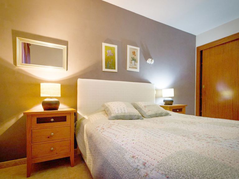 | Darüber hinasu gibt es zwei Schlafzimmer, eines mit einem Doppelbett, das andere mit zwei Einelbetten und ein Badezimmer mit Dusche und Whirpoolbadewanne. | |||||