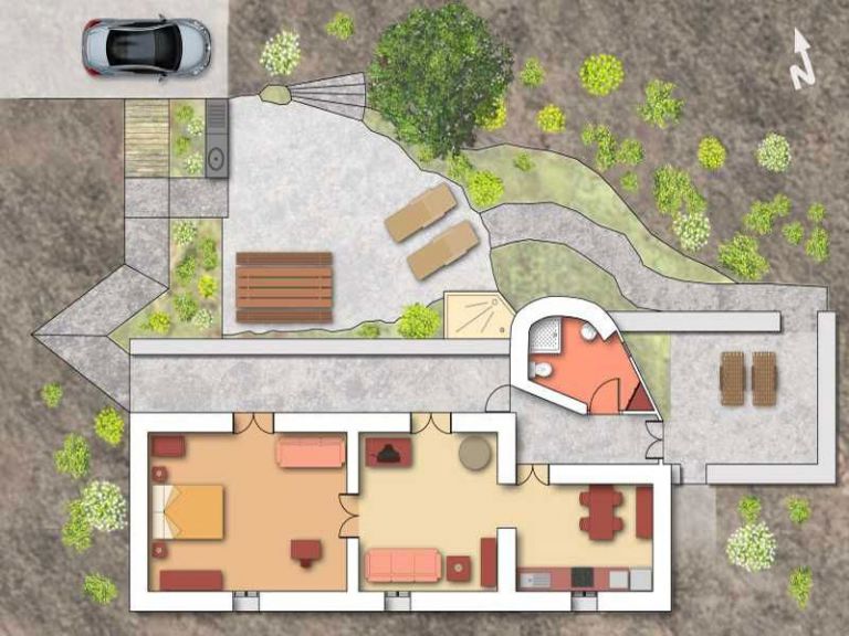 | Das Fincahaus ist mit ca. 60 qm Wohnfläche und Schlafcouch im Wohnraum für bis zu 3 Personen geeignet. | ||