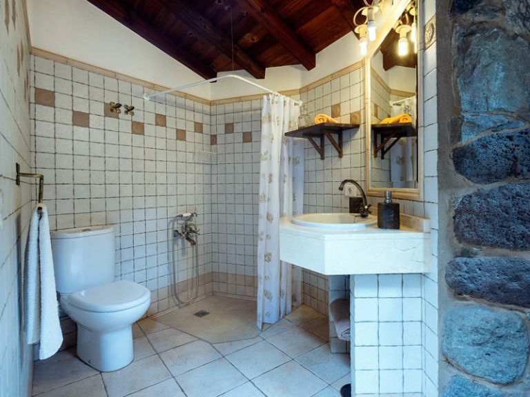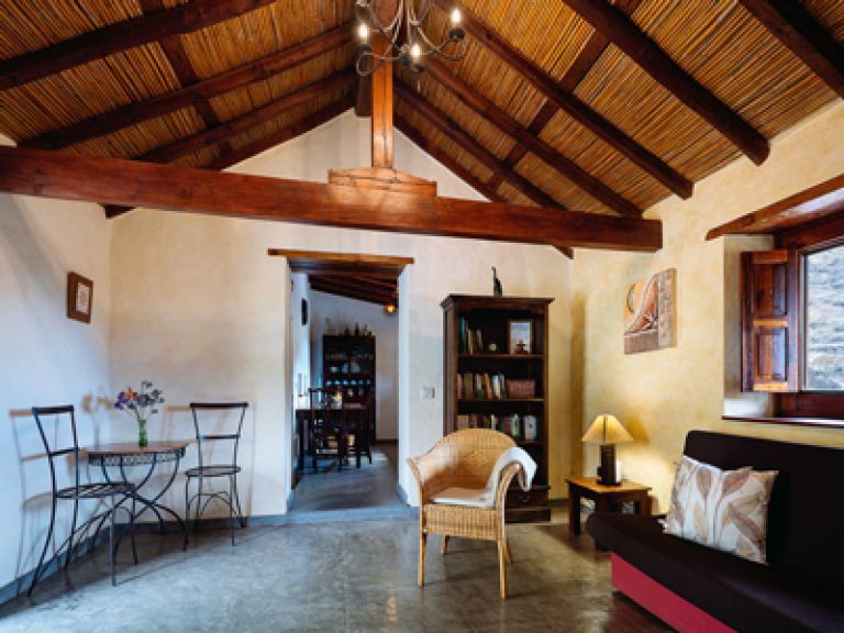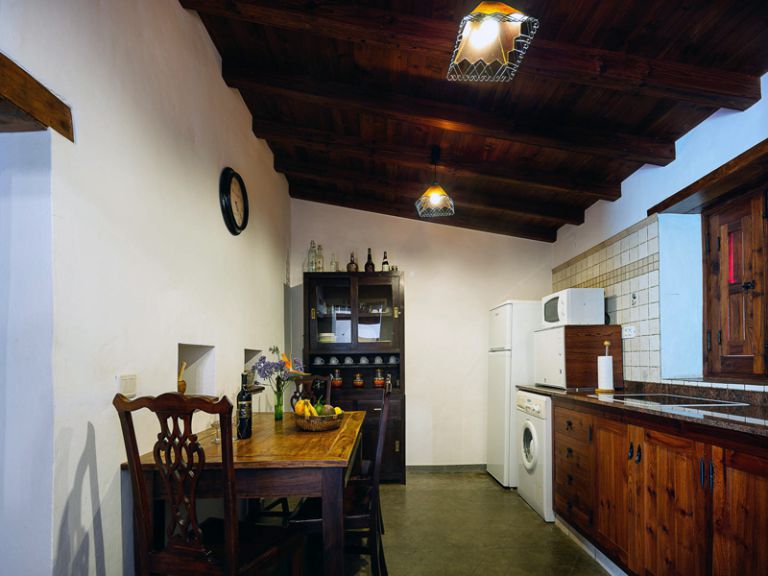 | Die Finca besteht aus einem Wohnraum mit SAT-TV und Schlafcouch, einer Küche mit Cerankochfeld, Kühlgefrierkombination, Mikrowelle und Waschmaschine. Darüber hinaus gibt es einen antiken Esstisch und einen Holzküchenschrank in der Küche. | ||