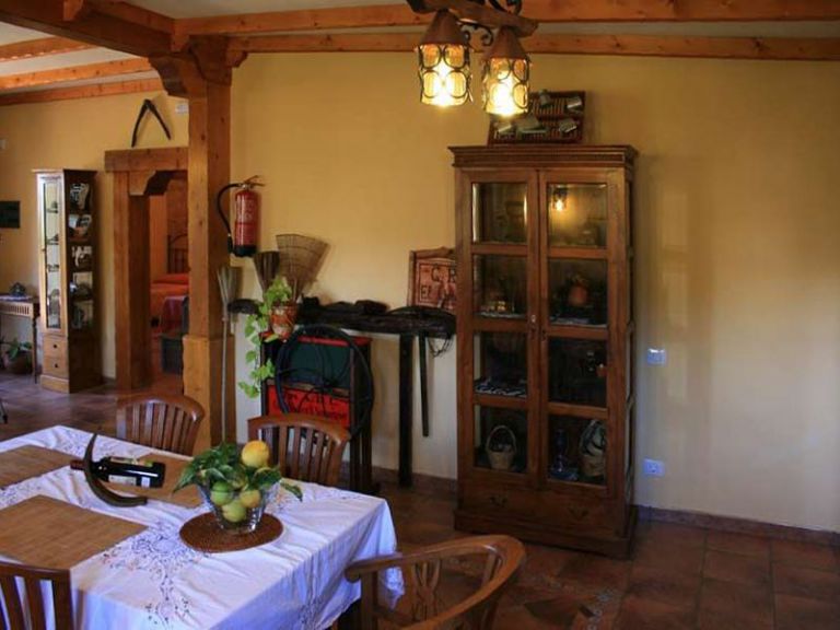 | Das Haus ist insgesamt sehr hell und weitläufig und durch die Zusammenstellung der Möbel und Farben und der Verwendung von Holz und Stein wurde ein warmer und gemütlicher Wohnessraum mit integrierter Küche geschaffen. Der Bereich ist mit bequemen Möbeln und mit zahlreichen antiken und sorgfältig restaurierten Gegenständen und einem SAT-TV und einem CD-Player ausgestattet. | |||||