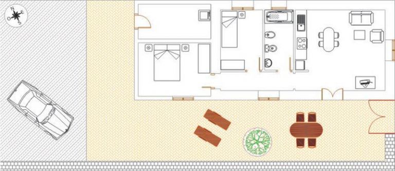 | Das ca. 70 qm Fincahaus bietet ausreichend Platz für 3 Personen und besteht besteht aus einem Wohnzimmer mit SAT-TV, CD und DVD-Spieler und integrierter Küche, zwei Schlafzimmer und einem Badezimmer. | |||