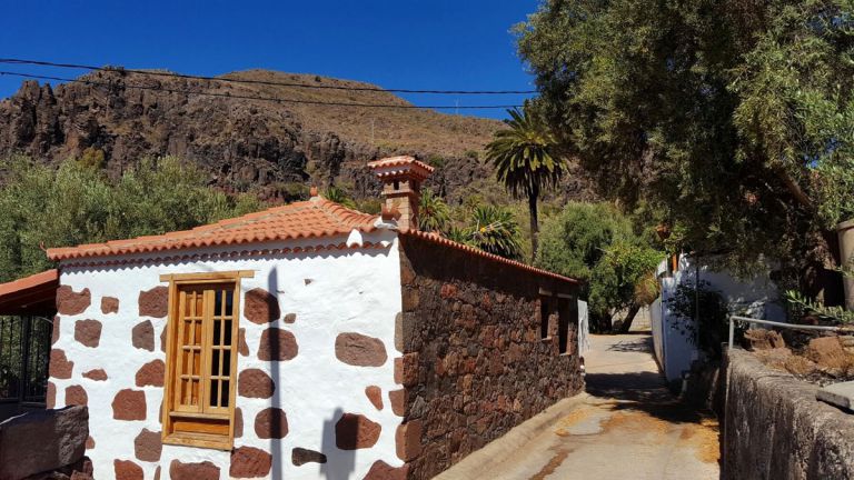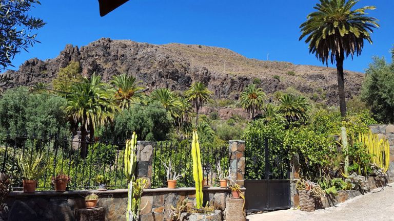 | Die Finca liegt neben einem historischen Wanderweg. Von hier aus lassen sich schöne Exkursionen per Rad oder zu Fuß unternehmen. Gleichzeitig liegt es in der Nähe des historischen Ortskerns von Santa Lucía mit verschiedenen Restaurants, Apotheke, Tankstelle und Supermarkt. Die Einfahrt zur Finca ist recht schmal. Normale Mietwagen wie Forst Fiesta oder Opel Corsa passen allerdings hindurch. |