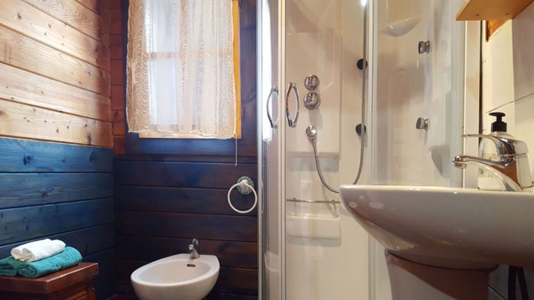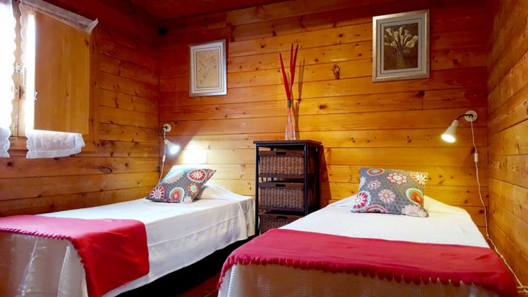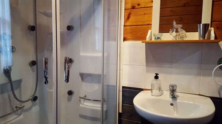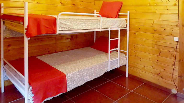 | Es gibt insgesamt drei Schlafzimmer, eines mit einem Doppelbett (150 x 200), eines mit zwei Enzelbetten (90 x 200) und eines mit einem Etagenbett (90 x 200). In einem gesonderten Raum befindet sich eine Couch, die als Schlafcouch für 2 Personen dienen kann. Die zwei Badezimmer verfügen jeweils über eine Dusche, Waschbecken und WC. |