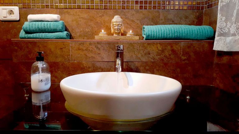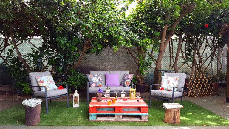 | Der Außenbereich besteht aus einem ca. 400 qm großen, teilweise bewaldeten Terrassengelände mit verschiedenen gemütlichen Sitzecken und einem Brunnen, der vor sich hinplätschert. | |||||
