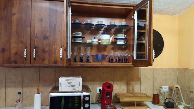 | Daran schließt sich die moderne Einbauküche an. Sie verfügt über einen doppeltürigen Kühlgefrierschrank, einen Geschirrspüler, Cerankochfeld, Backofen, Mikrowelle, Mixer, Espressokocher, Kaffeemaschine und zahlreiche Küchenkleingeräte. Eine Waschmaschine und ein Wäschetrockner sind vorhanden. |