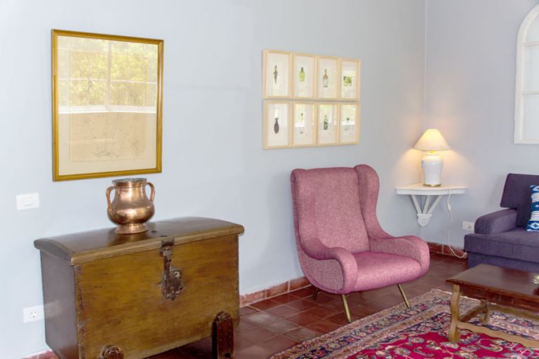 Auf dem riesigen Fincagelände befinden sich zwei Häuser. Das in den 50ziger Jahren erbaute 120 qm große Landhaus, das als Ferienhaus für bis zu 4 Personen vermietet wird und das im 18. Jahrhundert erbaute Herrenhaus, in dem die Eigentümer wohnen. Vor dem Finca Haus liegt der 18 Meter lange Pool. Hier steht auch die Skulptur des bekannten Deutschen Künstler Ulrich Ruckriem, der diesen Platz selbst vor zwanzig Jahren ausgewählt hat. |