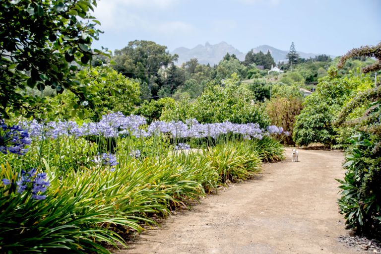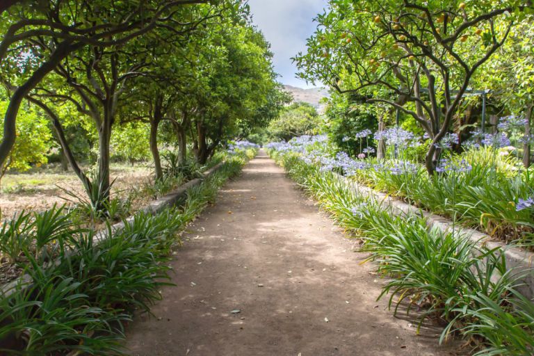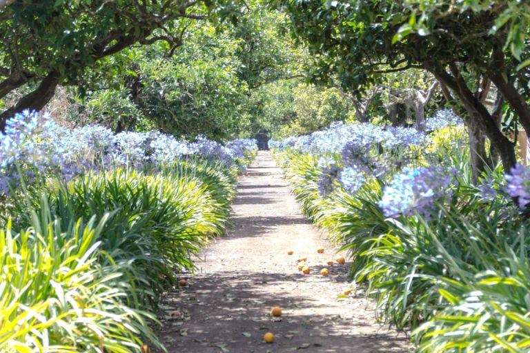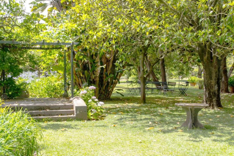 Hinter dem Garten befindet sich eine große Plantage, auf der der aus Südafrika stammende Pro Tee angebaut wird. Auf dem übrigen Fincagelände wachsen Orangenbäumen- und Zitronenbäume. Großen von Agapanthus flankierten den Zufahrtsweg. Im Garten selbst stehen zwei riesige, mehr als 150 Jahre alte Tannen. Diese Bäume wurden gepflanzt, um Schatten zu spenden, da das Haus als Sommerresidenz diente. Direkt von der Finca aus können Sie Spaziergänge in die landschaftlich reizvolle Umgebung der Finca unternehmen. |