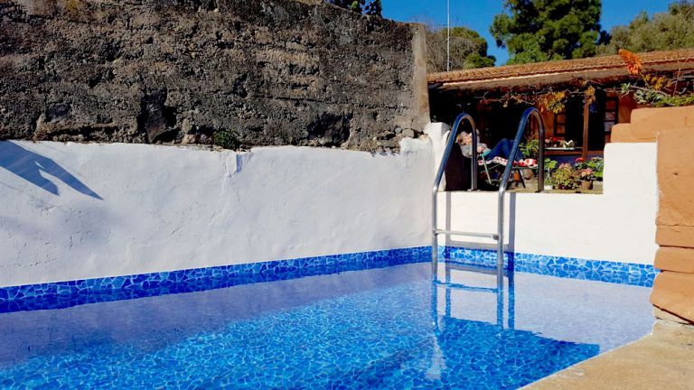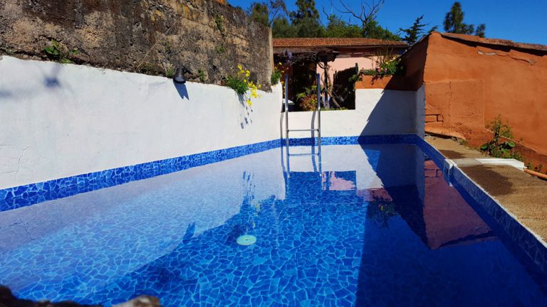 | Zur Finca gehört ein elektrisch beheizbarer Pool, der bis maximal 26° bis 28° aufgeheizt werden kann (210 x 650), eine wunderschön bewachsene Veranda, eine Terrasse mit Gartengrill und ein kleiner Garten. | |||||