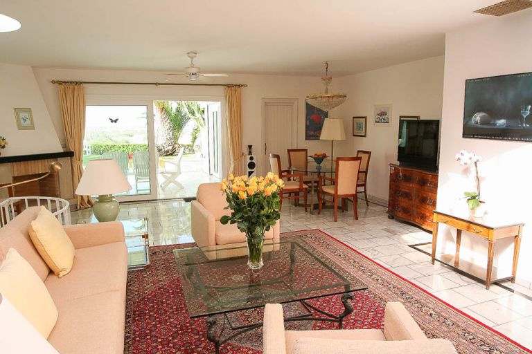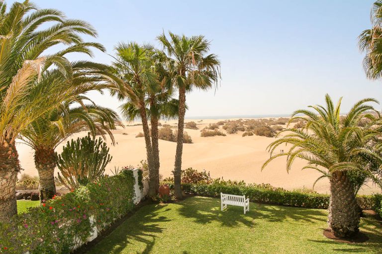 | Hier erwartet Sie ein geschmackvolles Ambiente, eine absolute Privatsphäre und ein einmaliger und grandioser Ausblick auf das Naturschutzgebiet der Dünen von Maspalomas, den Sie jeden Tag erneut genießen können. Vom Garten aus, mit altem Palmenbestand, können Sie unvergessliche Sonnenaufgängen und Sonnenuntergängen über der herrlichen Dünenlandschaft erleben. |