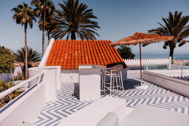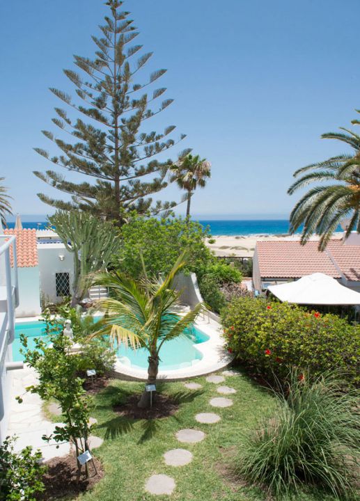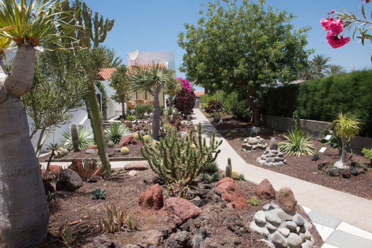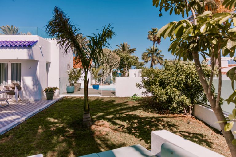 | Die Villa verfügen über eine eigene Terrasse, eine nicht einsehbare Dach- und Innenhofterrasse, eine Liegewiese und einen gepflegten Palmengarten. Von der Dachterrasse genießen Sie einen Blick auf die vor der Villa liegenden Dünen von Maspalomas. | |||||