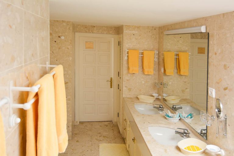 | Neben dem luxuriösen Marmorbad Duschbad mit Glaskuppel verfügt die Villa über ein separates WC mit Bidet und ein Gäste Duschbad mit WC. | ||