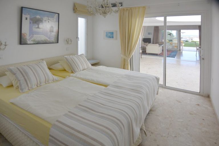 | Die Villa ist mit einer Wohnfläche von 120 qm, zwei Schlafzimmern mit Doppelbetten, zwei Bädern und Gäste-WC für 4 Personen geeignet. Über die große Südterrasse mit Pergola gelangen Sie auf die Dachterrasse. |