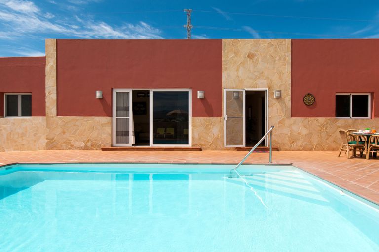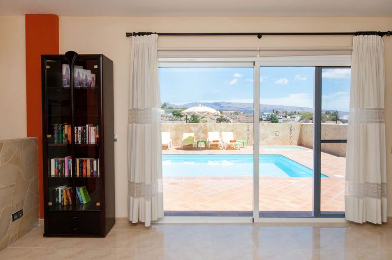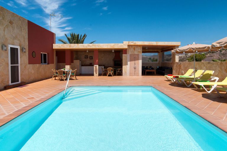 | Die Villa mit Pool liegt oberhalb von Maspalomas. Von der Terrasse aus genießen Sie einen traumhaften Ausblick auf die Dünenlandschaft von Maspalomas und erleben schöne Sonnenuntergänge im Südosten der Insel Gran Canaria. Zur Villa mit stilvollem Ambiente gehört ein privater 4 x 7,50 Meter großer elektrisch beheizbarer Pool mit Jacuzzi, Sonnenliegen und Sonnenschirm. | |||||