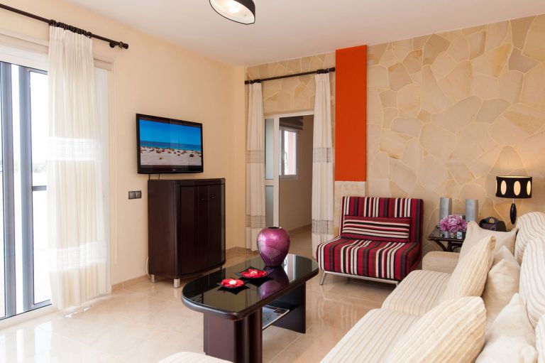 | Vom Wohnraum aus gelangen Sie an den Pool mit Jacuzzi, Grillbereich und Aussenküche. In der gesamten Villa herrscht eine moderne und warme Atmosphäre. Hochwertige Baumaterialien und die liebevoll gewählte Ausstattung prägen dieses Feriendomizil. | |||||