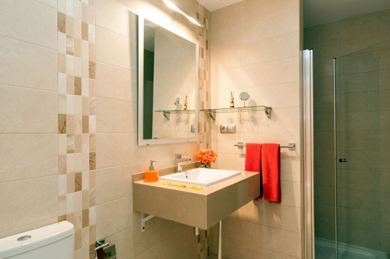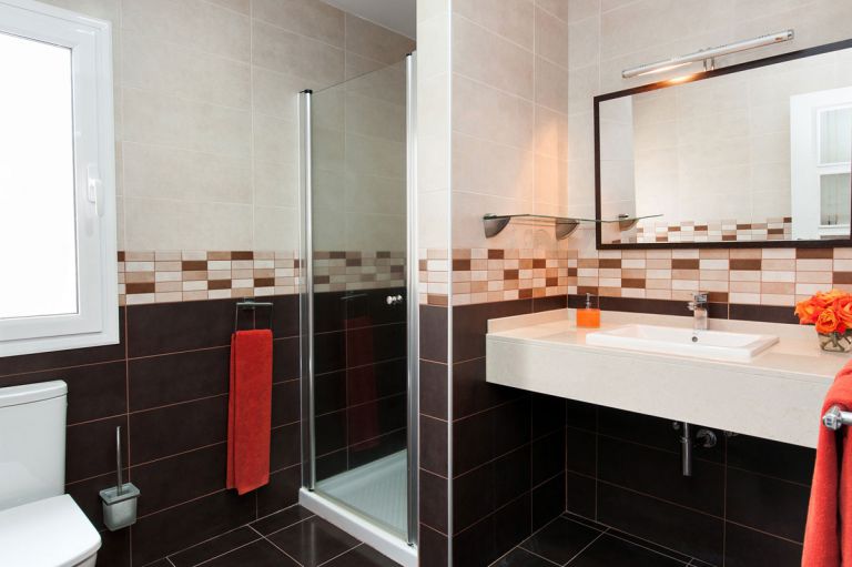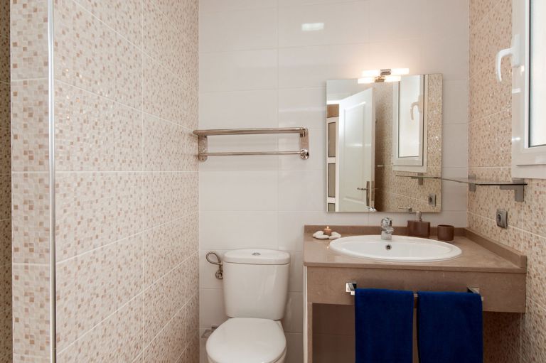 | Die Villa hat drei elegant geflieste Bäder, zwei sind mit Dusche, Waschbecken und WC ausgestattet, das dritte mit Eckbadewanne, Waschbecken und WC. | |||||