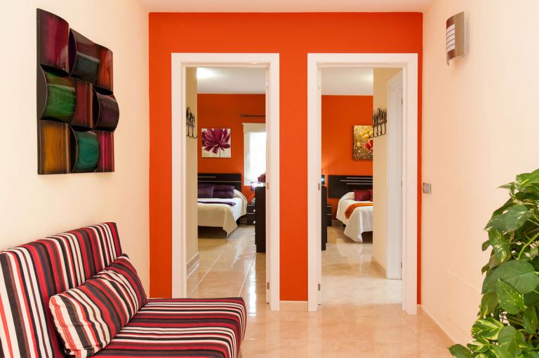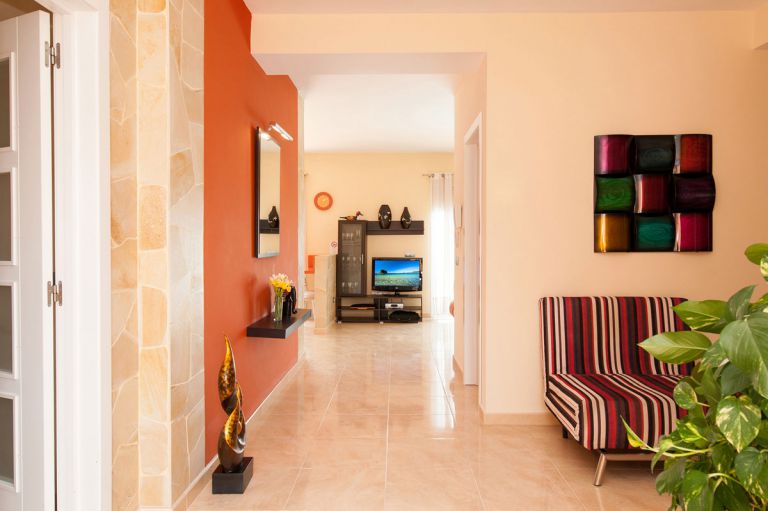 | Die Villa verfügt über 7 Schlafzimmer. Die hellen, freundlichen Schlafzimmer sind mit bequemen Einzelbetten der Größe 90 x 200 ausgestattet, die zusammengestellt sind, bzw. zusammengestellt werden können und dann eine Größe von 180 x 200 ergeben. Das Hauptschlafzimmer verfügt über ein SAT-TV mit Plasmabildschirm und eine Klimaanlage. Zwei weitere Schlafzimmer und ein Badezimmer befinden sich in dem neben dem Haupthaus liegenden Anbau. |