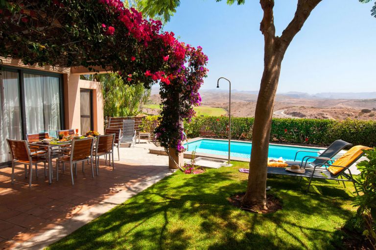 | Die Villa mit Privatpool liegt im Salobre Golf Resort auf Gran Canaria, nur 10 Autominuten vom Strand in Maspalomas entfernt. Sie bietet Ruhe und Entspannung, Terrasse, Garten und eine wunderschöne Weitsicht. | |||||