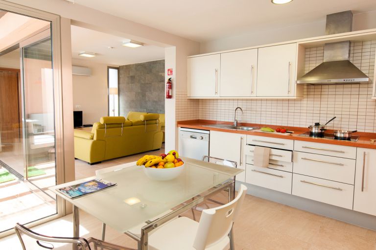 | Die offene Küche ist perfekt in das Wohnzimmer integriert, modern und praktisch eingerichtet und komplett mit allen Haushaltsgeräten ausgestattet, so dass es Ihnen an nichts fehlen wird. | |||||