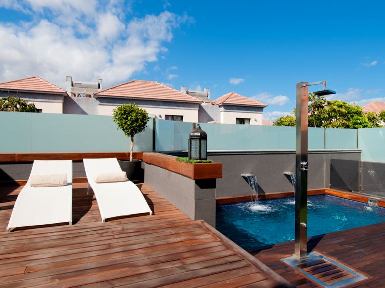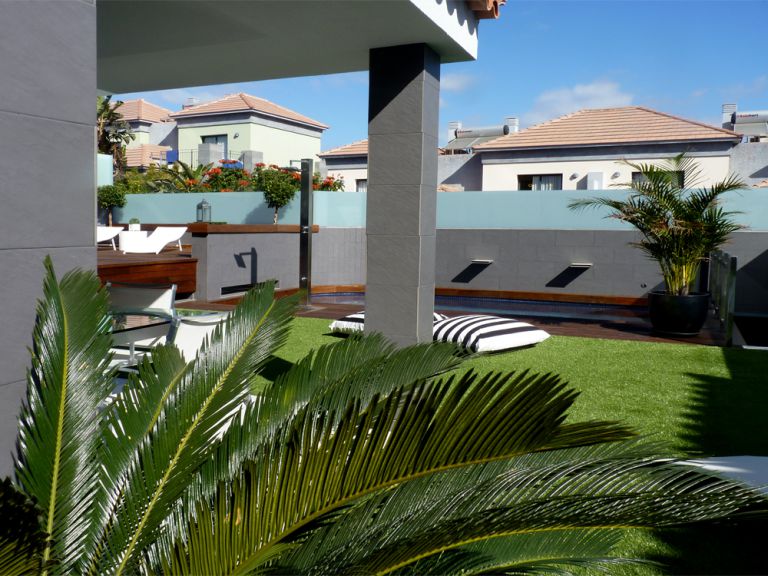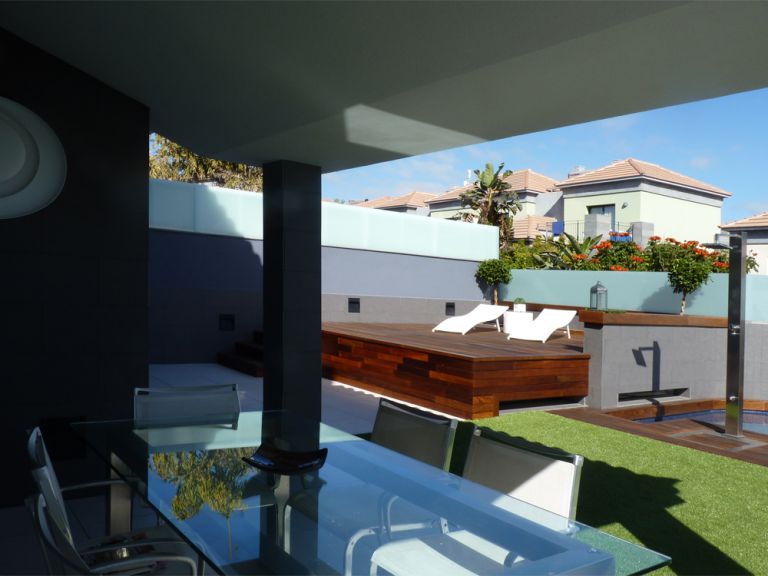 | Exklusive Villa mit Pool in Meloneras, einer noblen Gegend im Süden von Gran Canaria. Die 280 qm große Villa für bis zu 8 Personen ist modern und geschmackvoll ausgestattet. Selbstverständlich gehört zu dieser Villa ein eigener beheizbarer Pool. Bis zum Strand ist es nur ein kurzer Weg zu Fuß, ebenso zu den besten Bars, Restaurants und Boutiquen. |