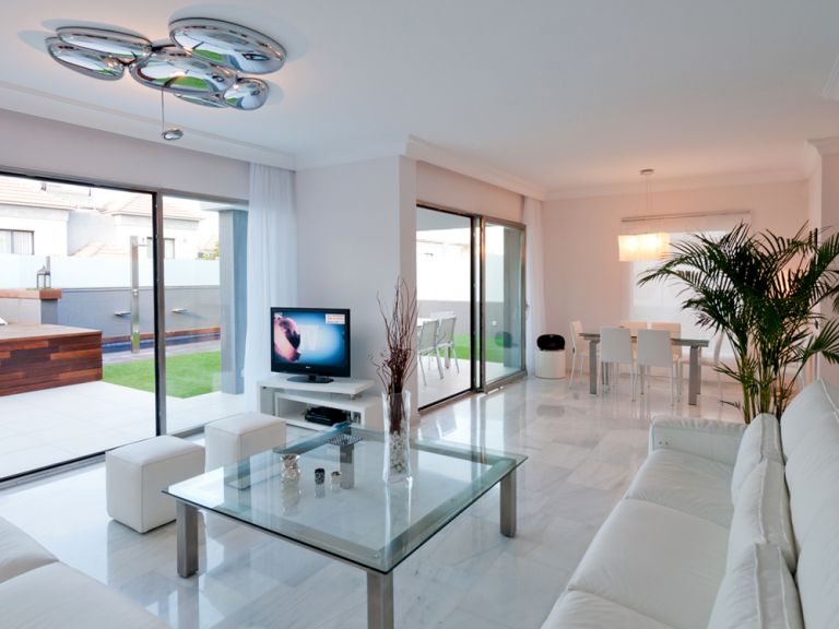 | Mit ca. 280 qm Wohnfläche, 4 komfortablen Schlafzimmern und 3 voll ausgestatteten Bäder ist die luxuriöse Villa für bis zu 8 Personen geeignet. Das großzügige, helle Wohnzimmer ist mit DVD-Player, SAT-TV, iPod-Dockingstation und WLAN ausgestattet. |