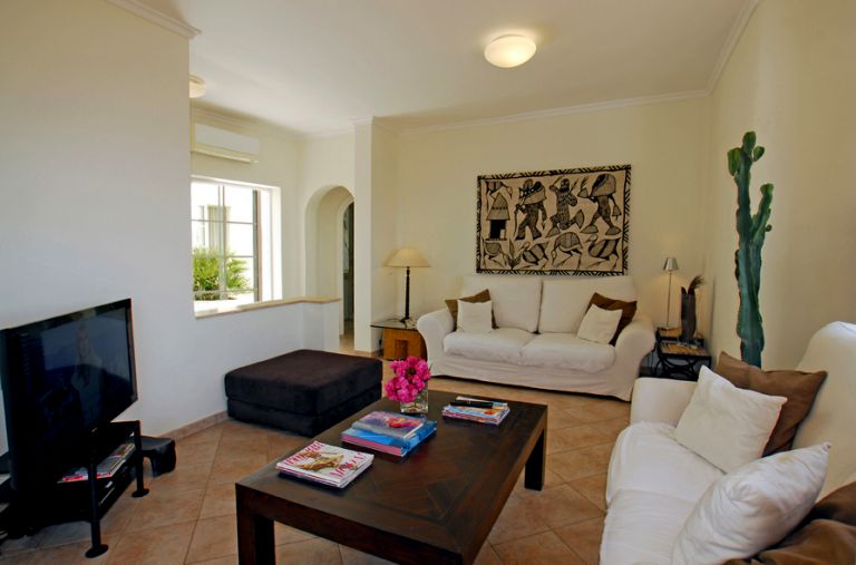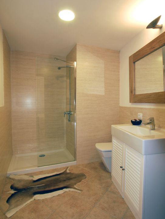 | Mit einer Wohnfläche von ca. 330 qm, 4 Schlafzimmer und 3 Bädern ist die Villa für 8 Erwachsene und 2 Kleinkinder geeignet. Im Erdgeschoss liegt ein großes Schlafzimmer mit Einzelbetten, SAT-TV und einem zugehörigen Badezimmer und ein weiteres Schlafzimmer mit einem Doppelbett, jedoch ohne Badezimmer. |